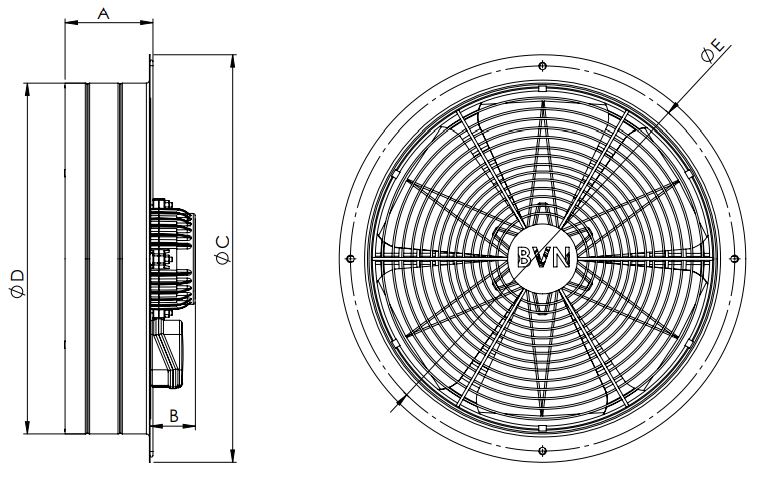 6 kanatlı, içbükey kanat sistemi mevcuttur. Duvar ve pencere montajına uygundur.